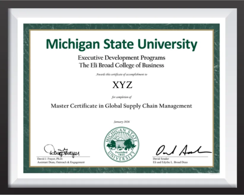 Now you can earn your Master Certificate in Global Supply Chain Management 100% online to gain the tools and techniques to integrate and coordinate the full range of global supply chain functions. Gain a competitive advantage in emerging global markets through the coordination and integration of your company’s logistics, operations, purchasing and market channels.
